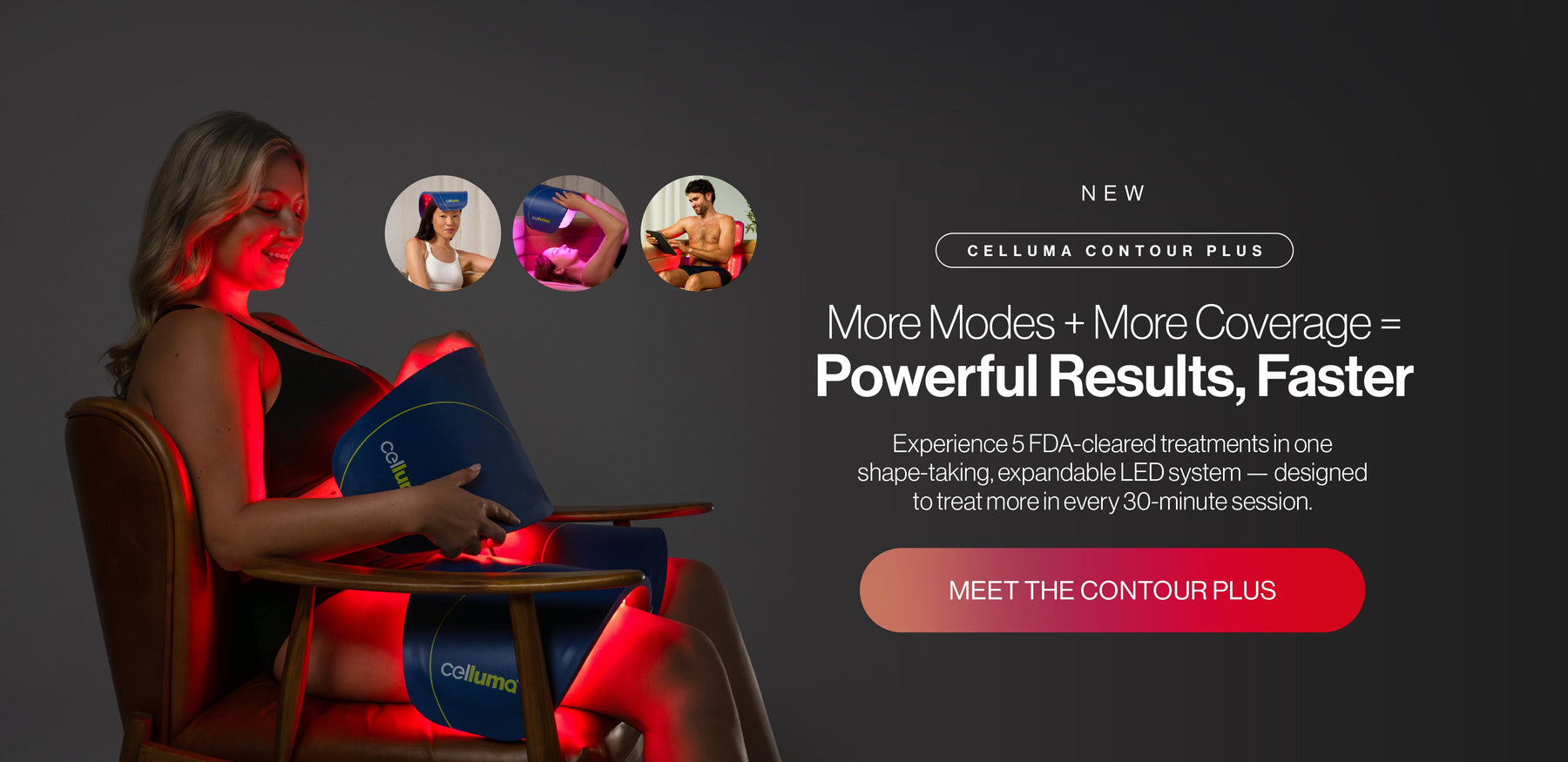 The most significant difference is that Celluma devices are flexible and shape-taking, without the need to hold it in place or the need to use a stand or cradle. Almost all Celluma devices can be contoured to the treatment area. Several devices are battery powered meaning they do not need to be plugged into a power outlet to be used, making them extremely versatile. The Celluma SERIES is the most medically credentialed LED device in the world as well as the most award-winning. The Celluma PRO and PRO PLUS and multi-panel Celluma CONTOUR and CONTOUR PLUS are the the most popular and most versatile devices on the market.