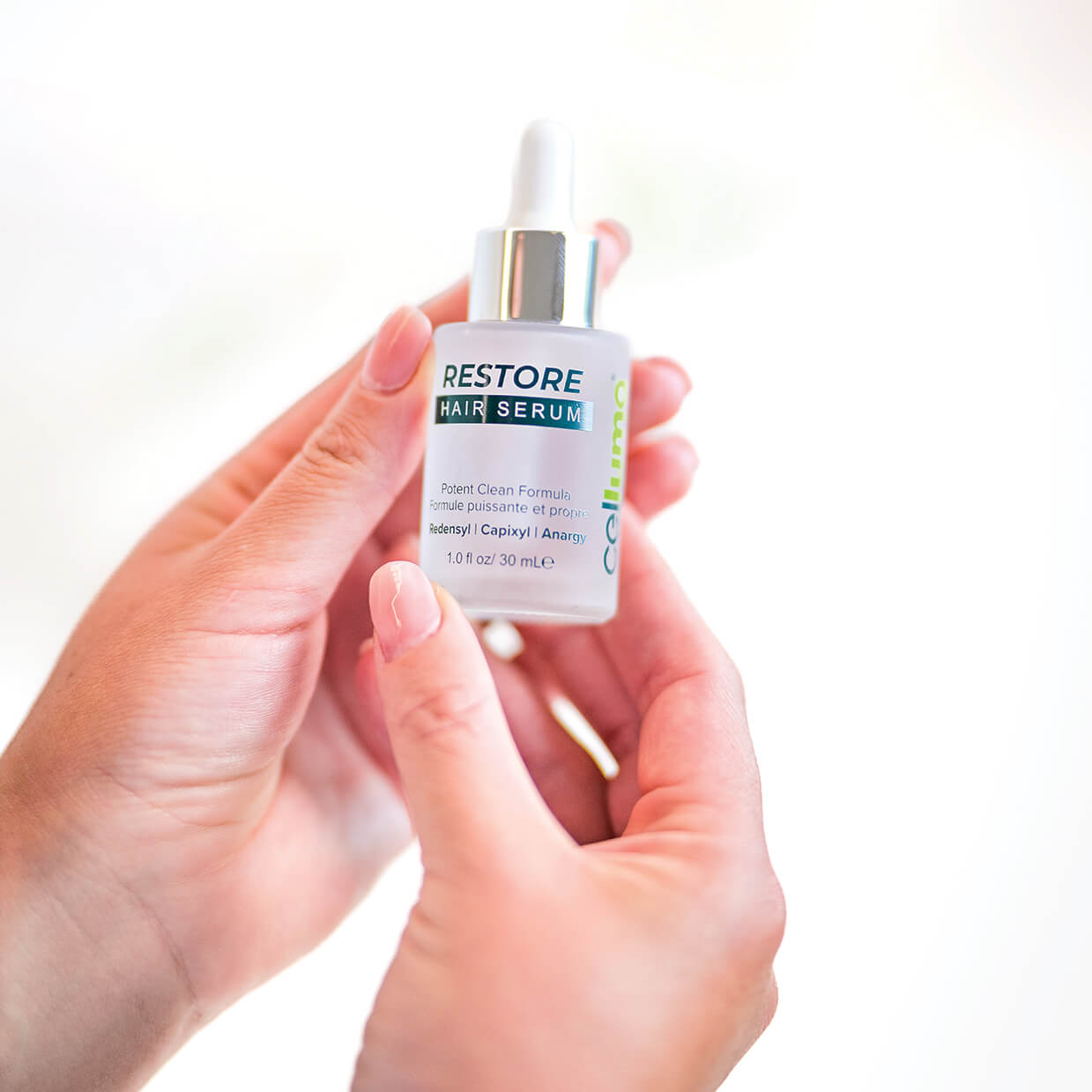 The RESTORE Hair Serum is designed to provide exceptional care and rejuvenation for your scalp and roots. Just like plants need water and sunlight to thrive, your hair craves the perfect combination of Celluma RESTORE® light therapy and our powerhouse blend of clean ingredients in the RESTORE Hair Serum.