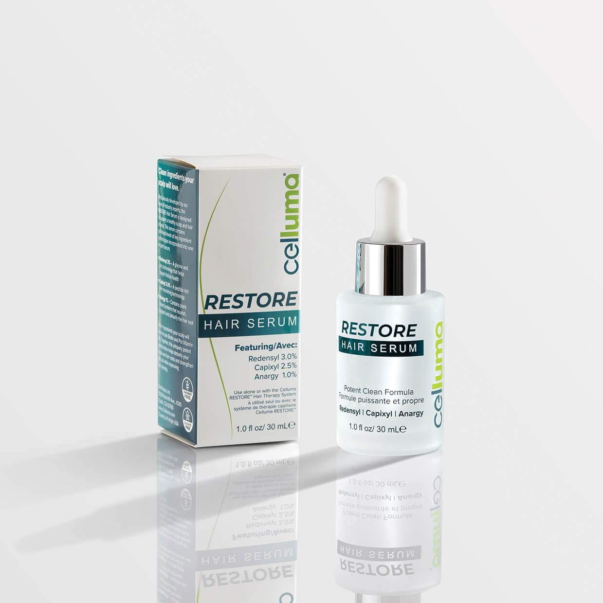 Together, the RESTORE Hair Serum + Celluma RESTORE® LED make up our 2-step RESTORE Hair Therapy System but can also be used as your everyday hair health serum.
