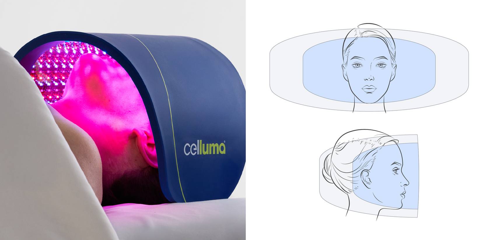 Urządzenia Celluma® łączą technologia LED klasy profesjonalnej z opatentowana, elastyczna, przybierająca kształt konstrukcja aby zabiegi mogły być wykonywane jak najbliżej skóry Do równomierne dostarczanie energii świetlnej na twarzy i wypukłych częściach ciała. (Dowiedz się więcej na naszej stronie Nauka o terapii światłem LED strona.)